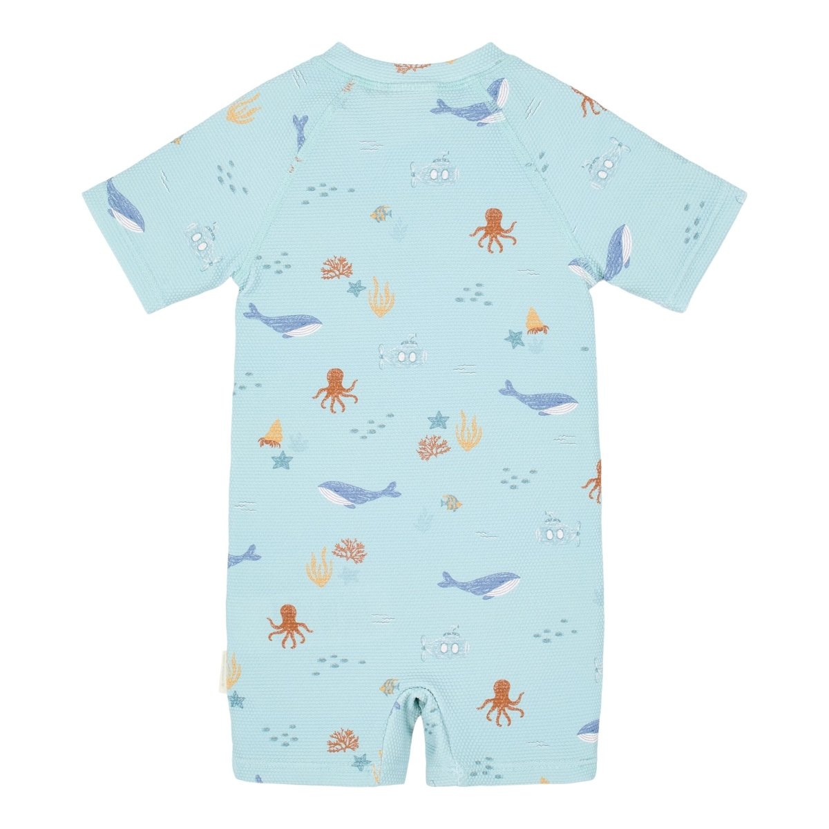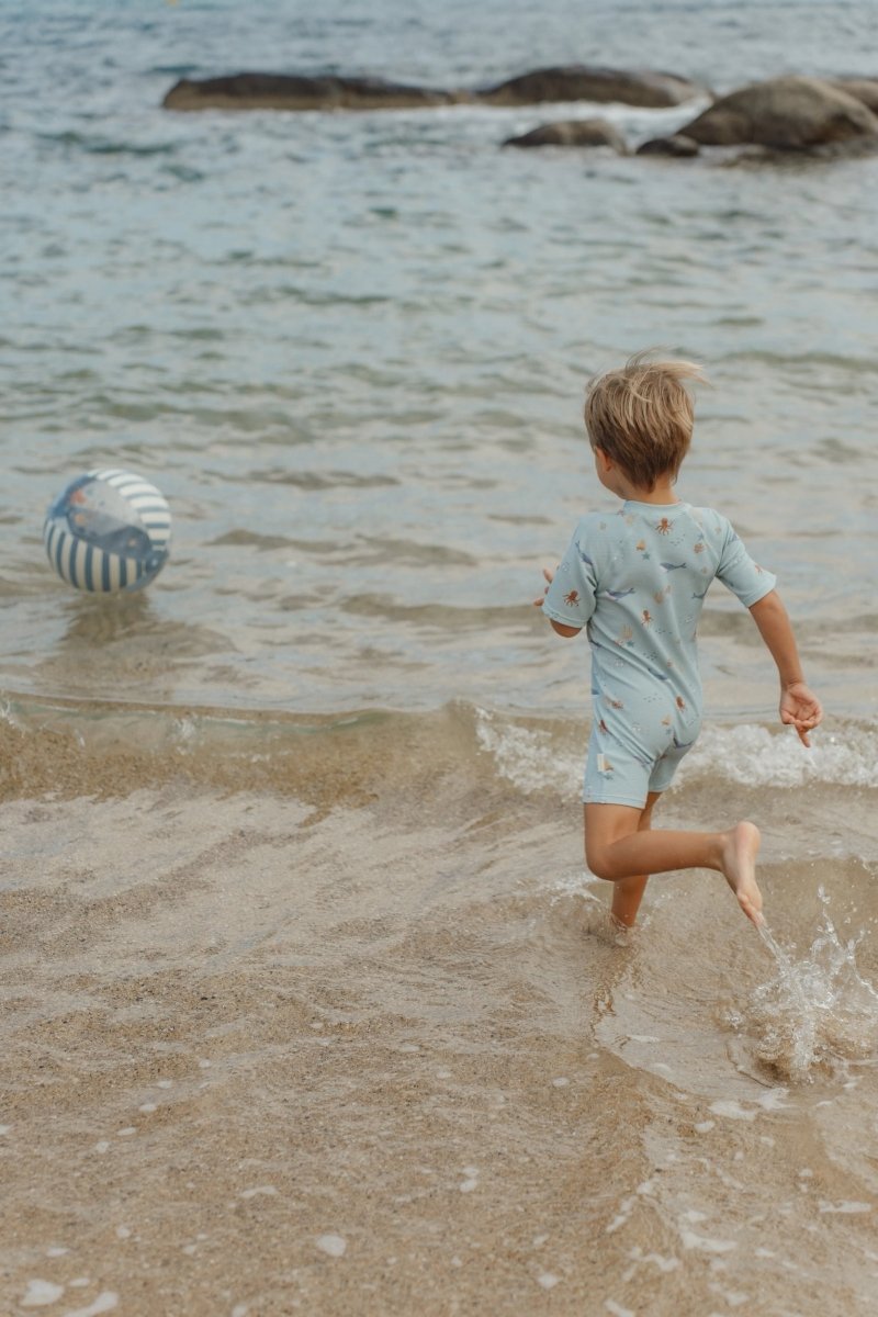 Beskrivning Recensioner Om den här produkten Låt ditt barn ge sig ut på upptäcktsfärd i baddräkten Ocean Friends! Denna baddräkt med korta ärmar är prydd med söta valar, glada fiskar och nyfikna krabbor och inbjuder till oändlig lek i vattnet. Egenskaper: Färg: Grön med havsdjursmönster Material: 94 % återvunnen nylon/6 % spandex (mjuk våffelstruktur) Bekväm, mjuk och stretchig för optimal rörelsefrihet Lång dragkedja: Lätt att ta på och av UPF40+ solskydd för huden Skötsel: Tvätta i 30 °C på fintvättprogram, stryk inte, kemtvätta inte, blek inte, lämpar sig inte för torktumlare En praktisk, snygg och säker baddräkt som gör varje vattenäventyr till en fest Trustpilot