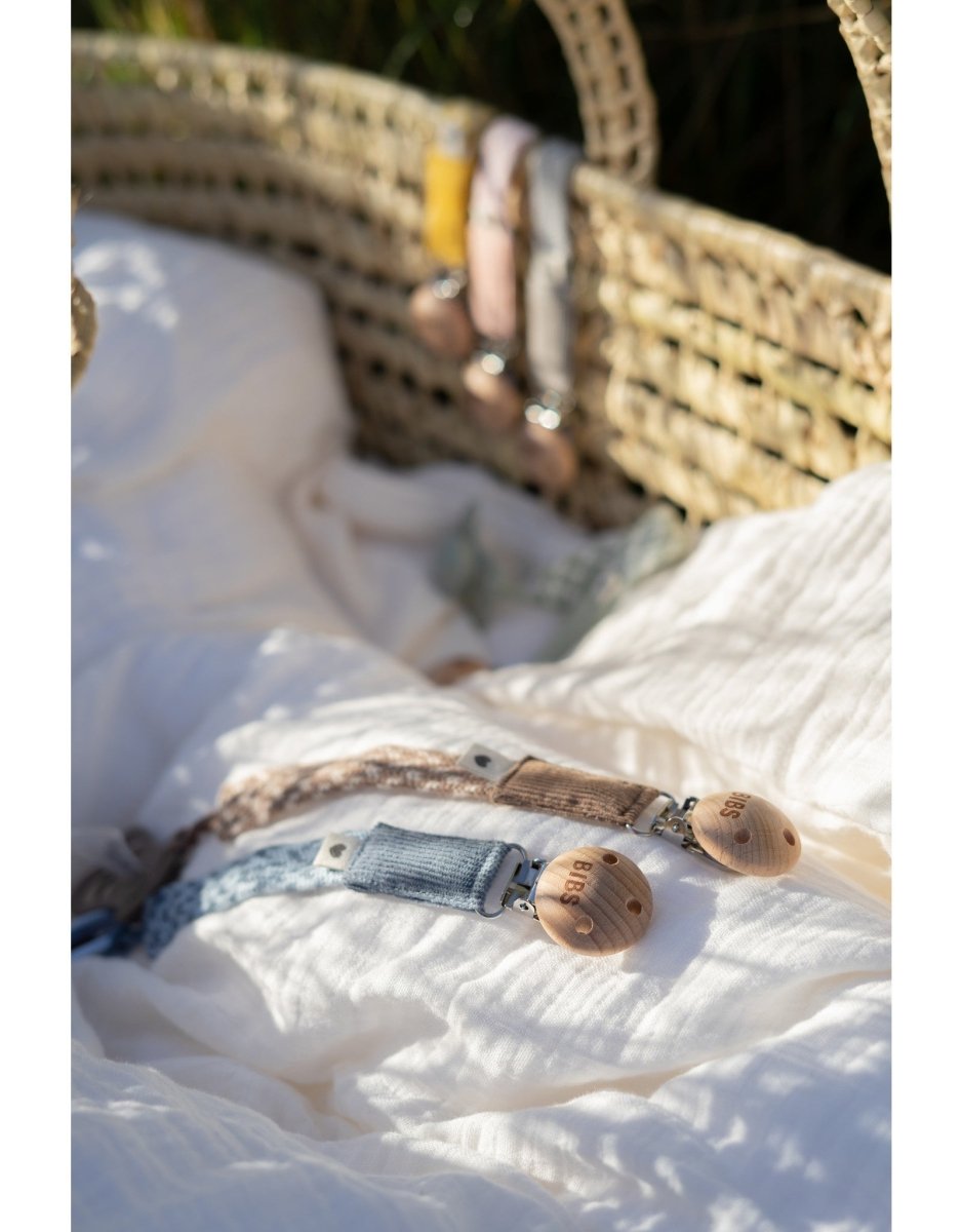 Det nickelfria metallclipset gör det enkelt att fästa nappsnöret på barnets kläder eller haklapp.