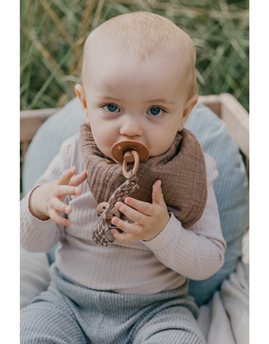 Innehåll: Nappsnöre Dark Oak/Vanilla Bibs