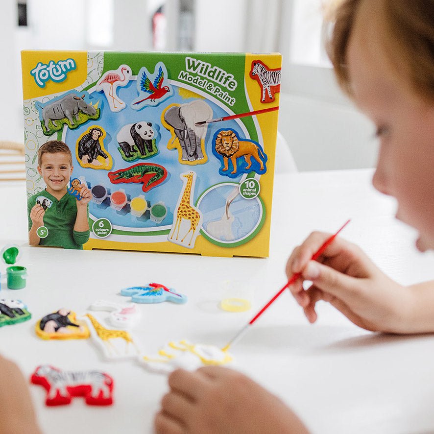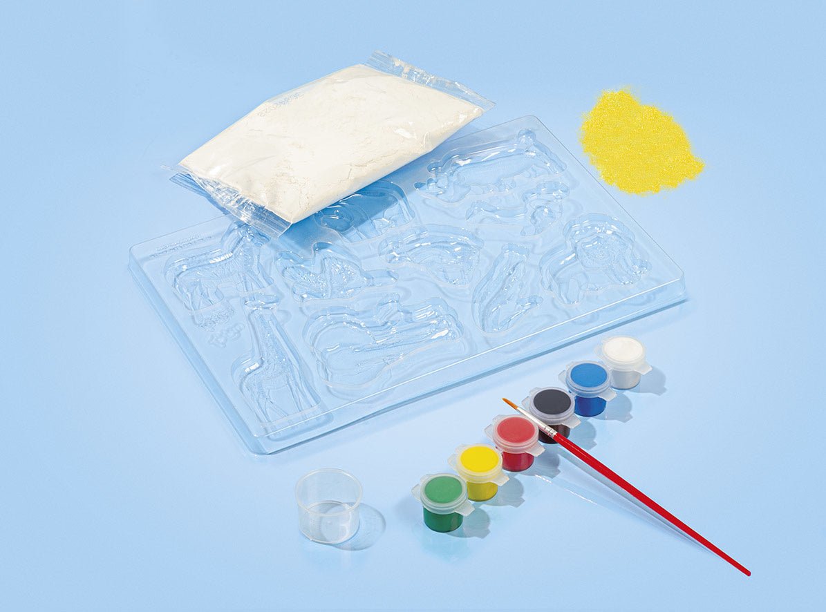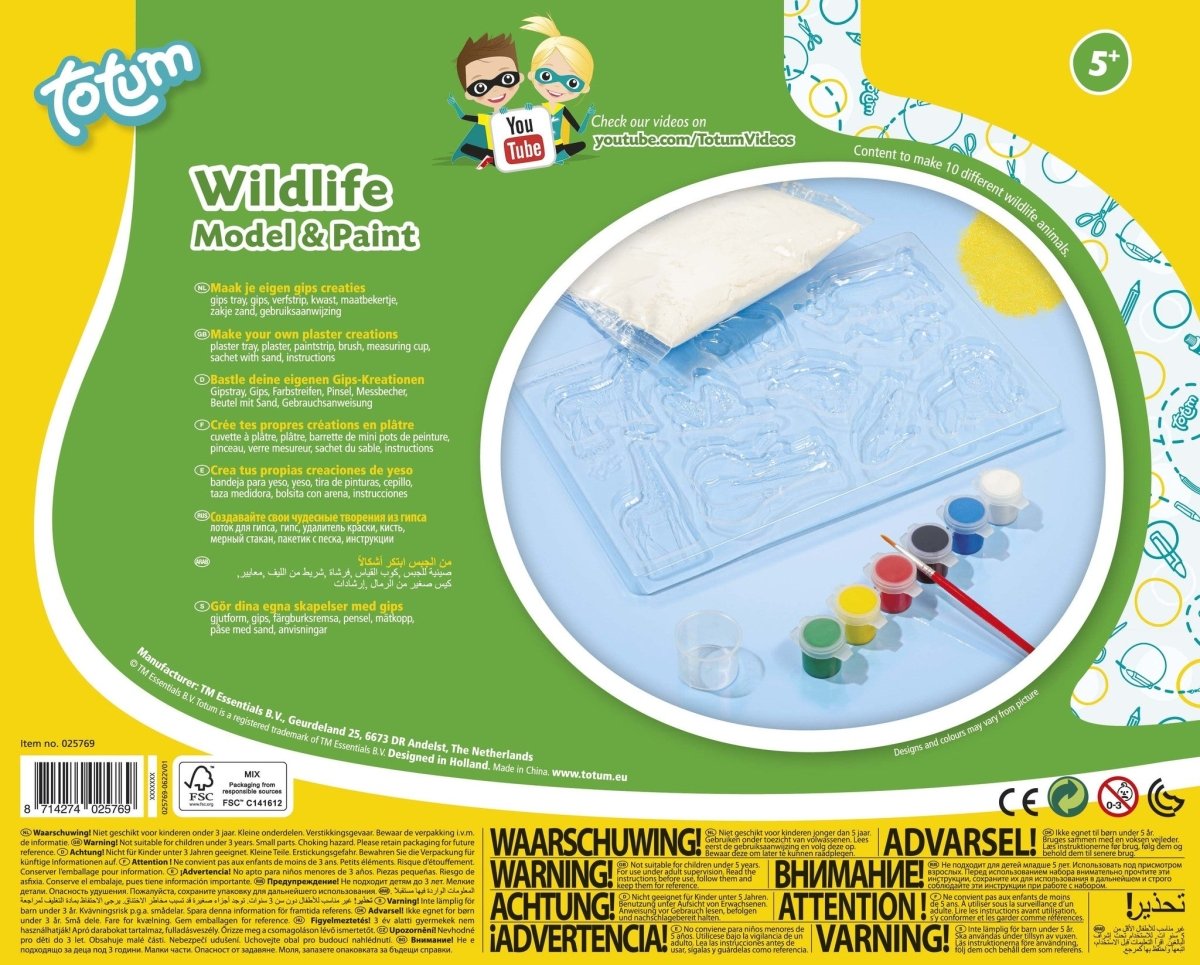 Med det här roliga gipsgjutningssetet från Totum kan du själv göra 10 olika djur av gips som du sedan målar med den medföljande färgen och penseln. Lär dig att blanda färger själv och gör ditt djurrike komplett med apa, flamingo, giraff, krokodil, lejon, elefant, noshörning, papegoja och zebra. De fem stora och resten, skydda dem alla!