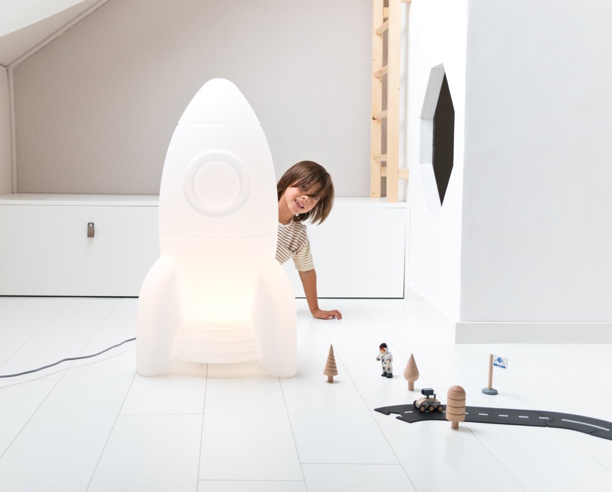 Flow Amsterdam Den här stora Apollo-lampan tänds och släcks med hjälp av en strömbrytare. Det hårda skalet gör det möjligt för barn att leka säkert med lampan.
