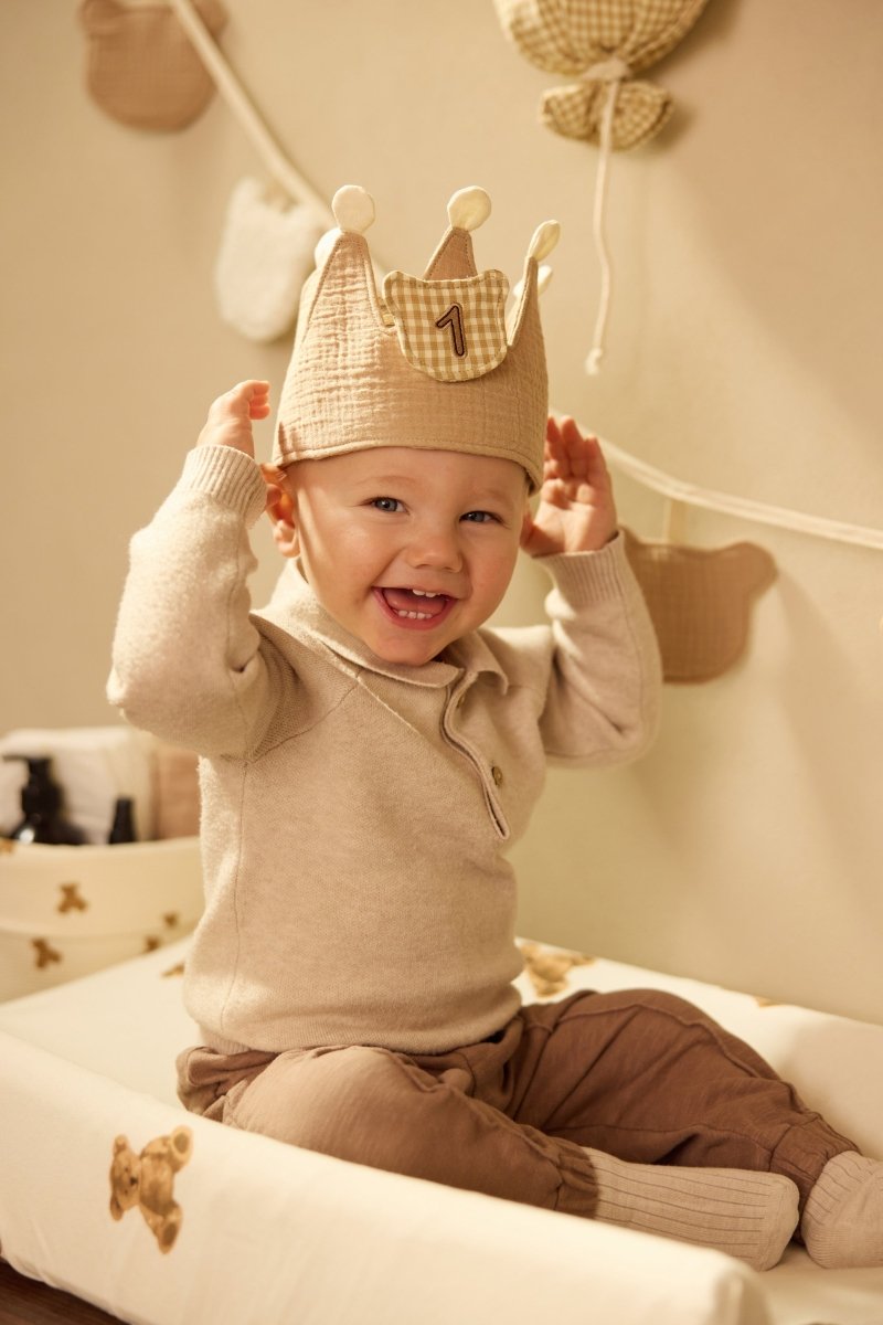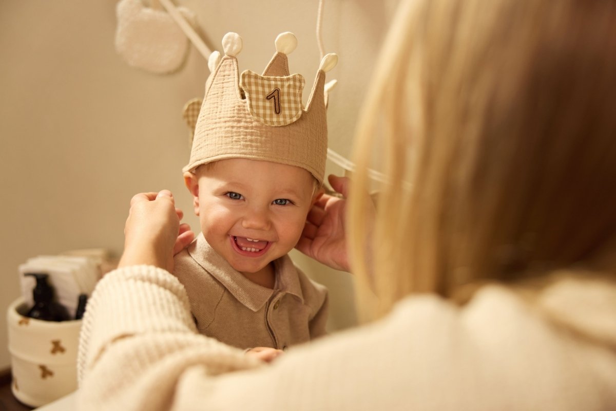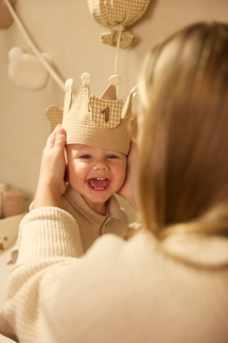 Att fylla år blir extra speciellt med den här festliga kronan! Så snart ditt barn sätter på sig den är det dags för fest. Den mjuka kronan är bekväm att bära och levereras med separata siffror från 0 till 4, så att den växer med varje födelsedag. Från den allra första födelsedagen till småbarnsåren: samma krona, varje gång med ett nytt nummer. Tack vare kardborrebandet ändrar du numret på några sekunder. På så sätt är kronan redo för fest gång efter gång!
