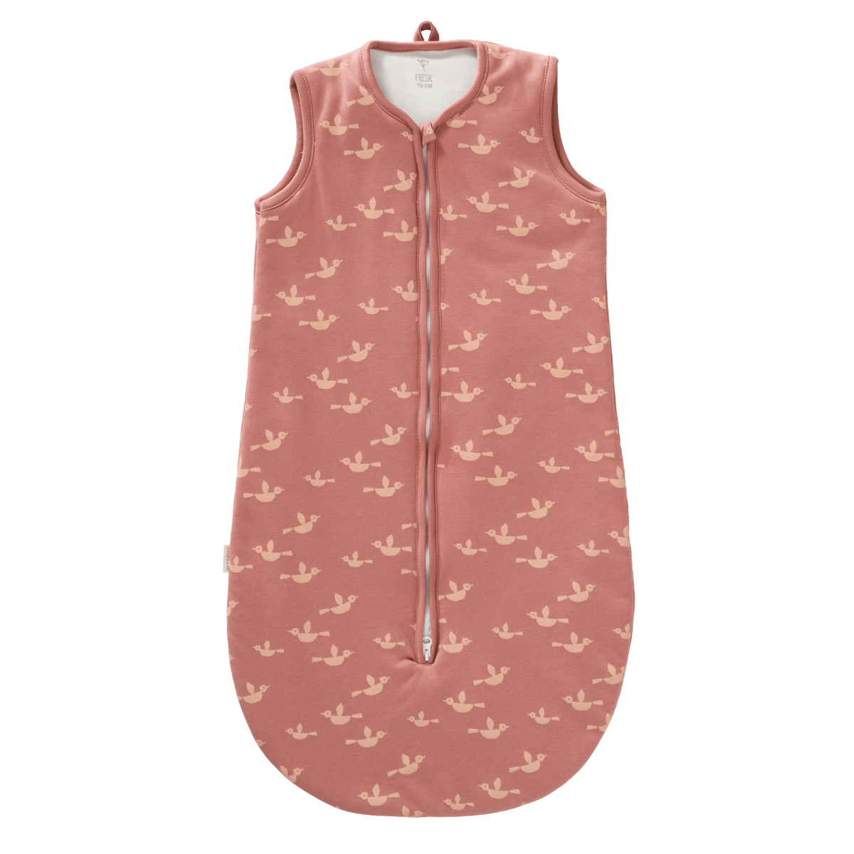 Härlig ärmlös sovsäck med lätt foder från Fresk. Denna sovsäck är lämplig för varma och kalla dagar. Ditt barn kommer att må bra och drömma sig bort i sin spjälsäng. Sovsäcken kan maskintvättas i upp till 40 grader. Tillverkad av 100% ekologisk bomull och rättvist och hållbart producerad i Turkiet. TOG-värde: 2,8