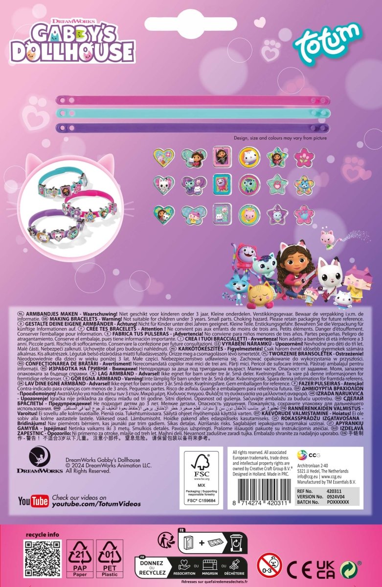 - passar barn från 3 år - komplett smyckesset med allt du behöver till 3 charmarmband - enkelt att göra charmarmband med 18 berlocker - välj dina egna glada charmfigurer - kan användas som vänskapsarmband - en fin present som du kommer att ha glädje av varje dag - tips: trevligt att kombinera med andra Gabby's Dollhouse-artiklar, som klistermärken, stämplar, armbandstillverkning, klistermärken och diamantfärg, spara dem alla! - stimulerar fantasi och kreativitet: väck din egen värld av din favoritkaraktär och -serie till liv - detta set finns även i licenser och teman som t.ex: PAW Patrol och Unicorn - pyssla med Totum!