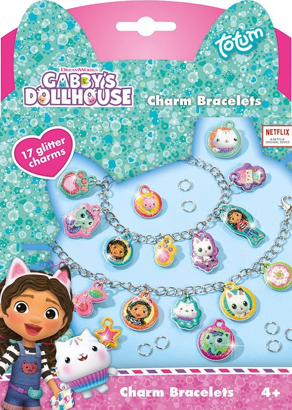 Med det här glada smyckessetet kan du enkelt göra de sötaste Gabby's Dollhouse-armbanden med berlocker gjorda av 2D-glitterstickers. Vilka berlocker kommer du att använda först? Gabby, Pandy Paws, Mercat eller Cakey Cat? SÅ söta! Njut av dina hemmagjorda armband varje dag, eller ge bort ett som vänskapsarmband till din bästis.
