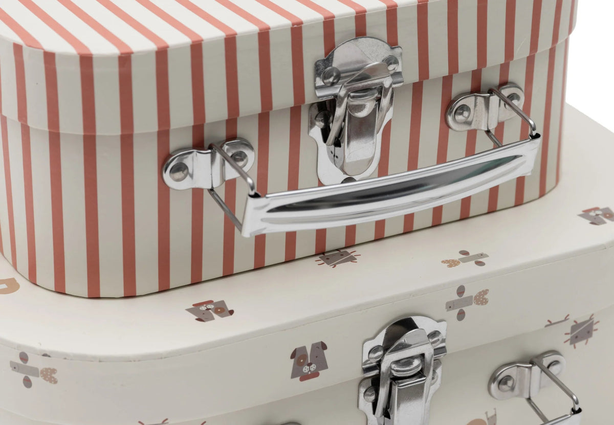 Det här resväsksetet i Tiny Park-stil är perfekt för din lilla vän! Resväskorna har olika tryck och samma färger som Tiny Park-temat, med silverhandtag som ger dem en lekfull look. Båda resväskorna har ett diamantmönster på insidan och texten "belongs to" så att din mini kan ta med dem överallt. Perfekt för förvaring av småsaker eller som dekoration i barnrummet!
