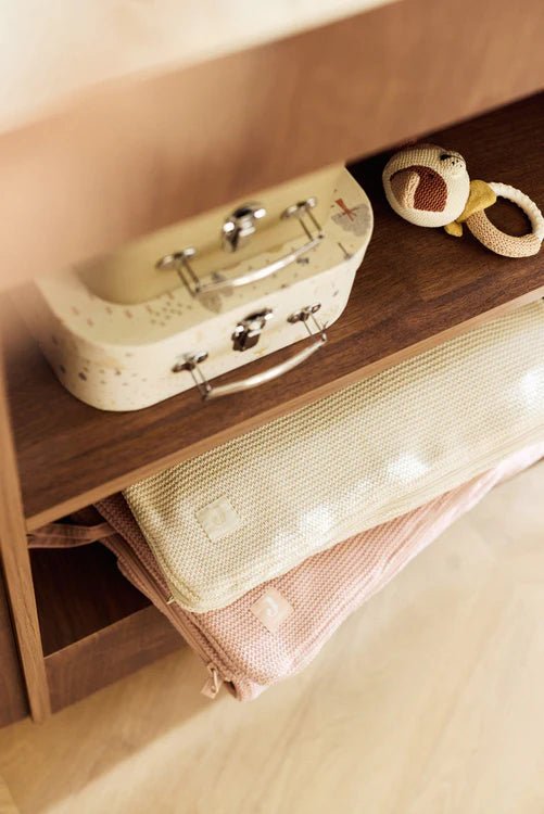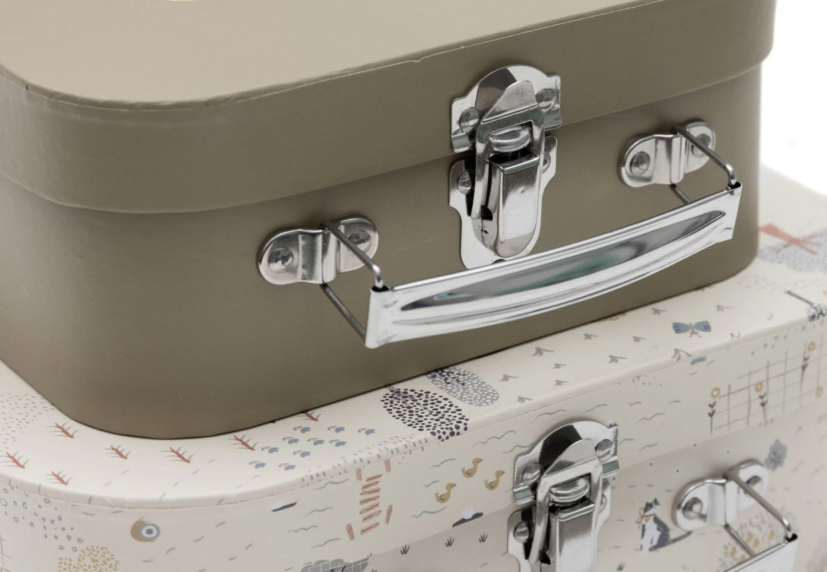 Det här resväsksetet i Tiny Park-stil är perfekt för din lilla vän! Resväskorna har olika tryck och samma färger som Tiny Park-temat, med silverhandtag som ger dem en lekfull look. Båda resväskorna har ett diamantmönster på insidan och texten "belongs to" så att din mini kan ta med dem överallt. Perfekt för förvaring av småsaker eller som dekoration i barnrummet!