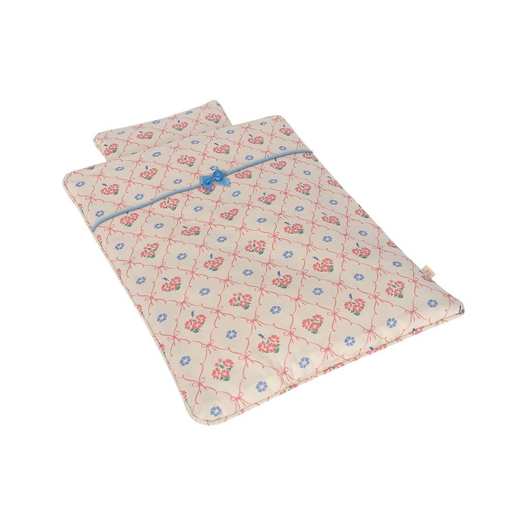 Vadderad dockbädd i 100% ekologisk bomull. Designad med mjuk piping. Sängkläderna levereras i en matchande tygväska med dragsko. Tillverkad av 100% ekologisk bomull med fyllning av återvunnen polyester. Denna produkt är certifierad enligt OEKO-TEX® STANDARD 100, klass 1 av DTI Tekstil, DTI 2276-361. 3y+ VARNING! RISK FÖR KVÄVNING OCH STRYPNING. Små delar. Lång sladd. Inte lämplig för barn under 36 månader.