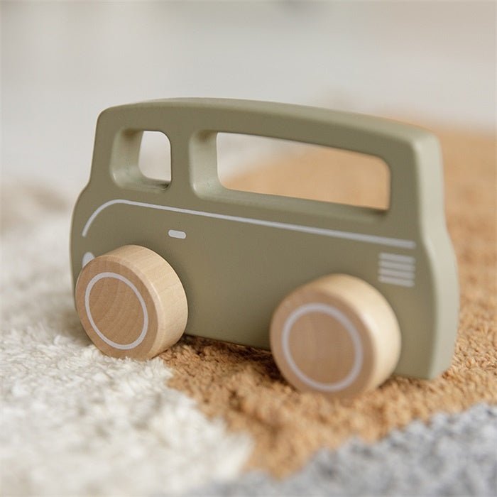 Little Dutch I en vacker olivfärg kör denna Little Dutch van med sina robusta trähjul glatt omkring. Den har ytterligare två vänner: en bil och en sportbil. Också fin som en accessoar i barnkammaren eller barnrummet.