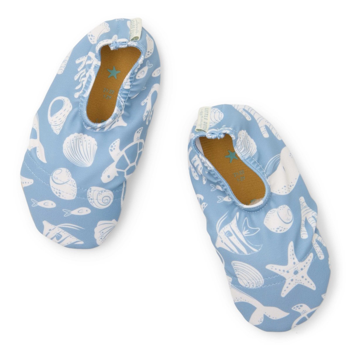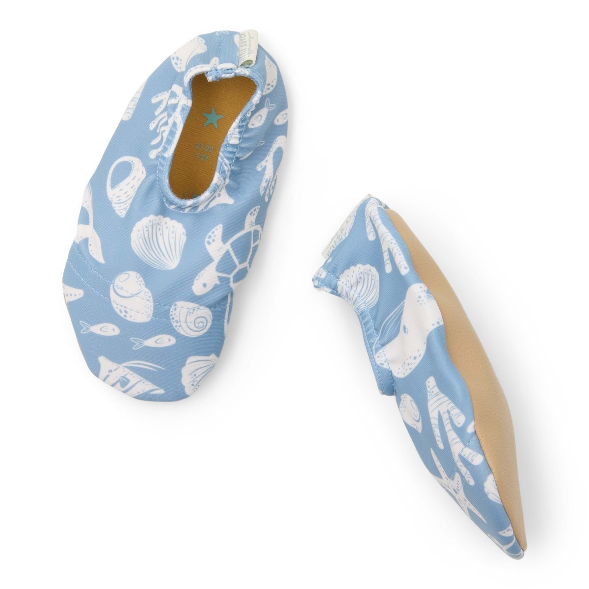 Den charmiga blå Ocean Sea Life-designen, dekorerad med snäckskal, sjöstjärnor och valar, ger ett lekfullt och livfullt utseende till ditt barns strandkläder. Dessa simskor är utformade för att vara lätta att ta på och av, vilket gör dem idealiska för upptagna föräldrar och aktiva småbarn. Finns i storlekarna 19-20, 21-22, 23-24, 25-26 och 27-28. Kombinera med den matchande långärmade baddräkten för en Ocean Sea Life-look från topp till tå.