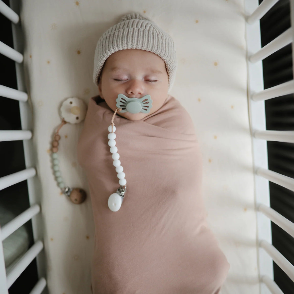 Mushie har vackra handgjorda nappsnören. säkert testad enligt europeiska föreskrifter.
