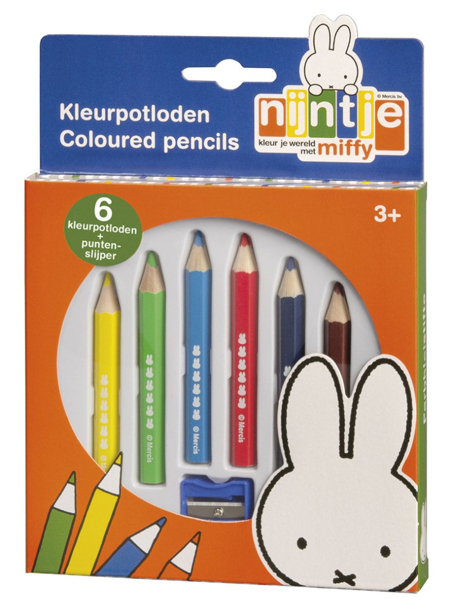 Dessa extra tjocka och korta nijntje färgpennor är speciellt framtagna för att användas av småbarn. Setet innehåller 6 pennor i klara färger och en speciell vässare. För vässning, använd den medföljande färgpennvässaren, som ger ännu längre glädje av färgpennorna. Lärande: tränar finmotoriken, främjar kreativiteten.