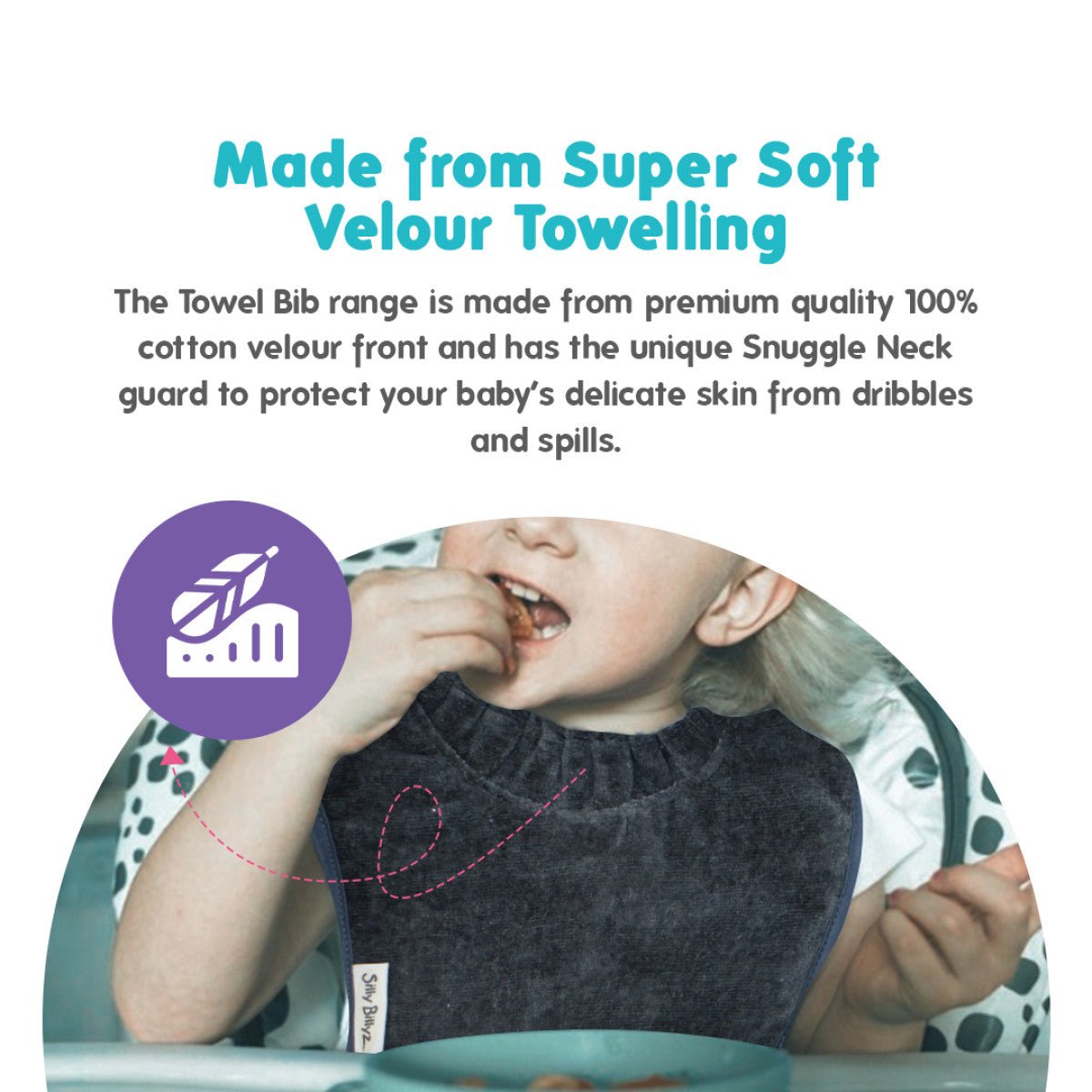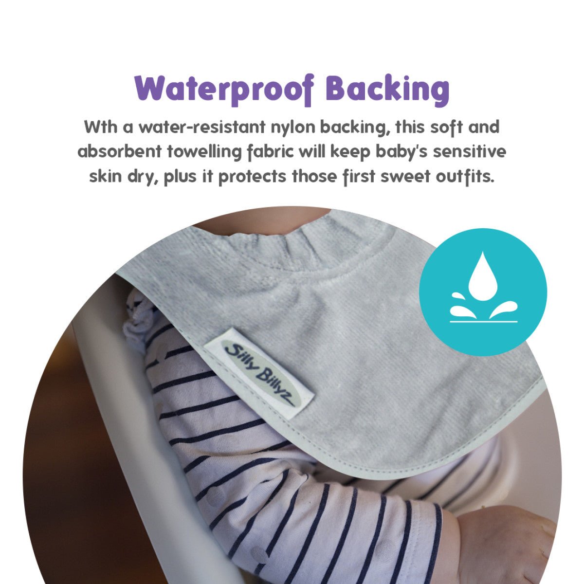Den här stora silverhaklappen från Silly Billyz är idealisk för barn med reflux, tandvård eller frekventa uppkastningar och säkerställer att varje måltid är ren och bekväm!