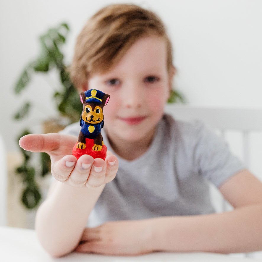 Du kommer att överraska alla PAW Patrol-fans med det här superroliga fodralet. Gör din egen Chase-figur av gips med gummiformen, låt den torka och måla sedan din figur med den medföljande färgen och penseln. Ge Chase en fin plats i ditt rum och njut av att minnas tillbaka på din favoritserie.